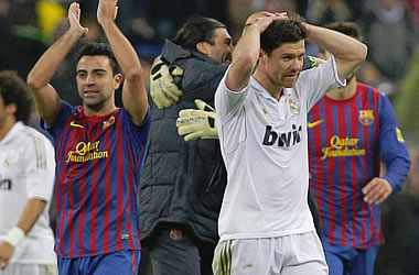Y si estuvo, se escondió. Sin él, el equipo naufragó en el medio campo. Benzema hizó un partido primoroso, demostró su calidad, se ofreció, se desmarcó, no perdió un balón y siempre creó peligro, pero no tuvo un lazo con esos dos cortavientos en que se convirtieron Xabi y Lass. Ronaldo andaba peleándose con si mismo y Di Maria fue todo esfuerzo y nada de acierto, justo en el partido en el que más pausa se necesitaba de él, asi que poco o nada quedó del ataque Madridista.
